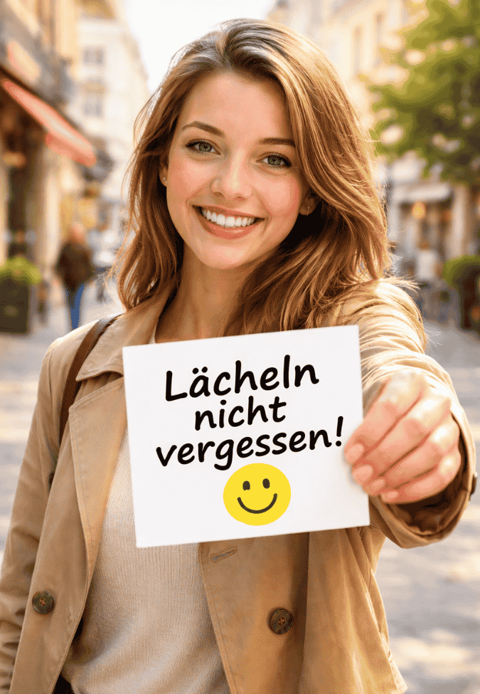 - Ein Lächeln am Morgen vertreibt Kummer und Sorgen.